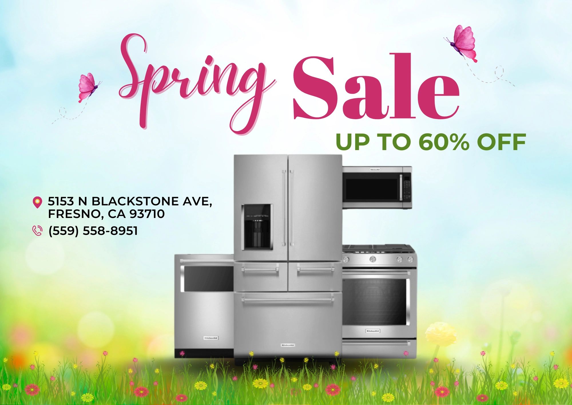 Looking for affordable appliances? We’ve got you covered! Give us a call at: (559) 558-8951. Our inventory is updated weekly with a wide range of high-quality, discounted appliances. Get in touch today and find exactly what you need!